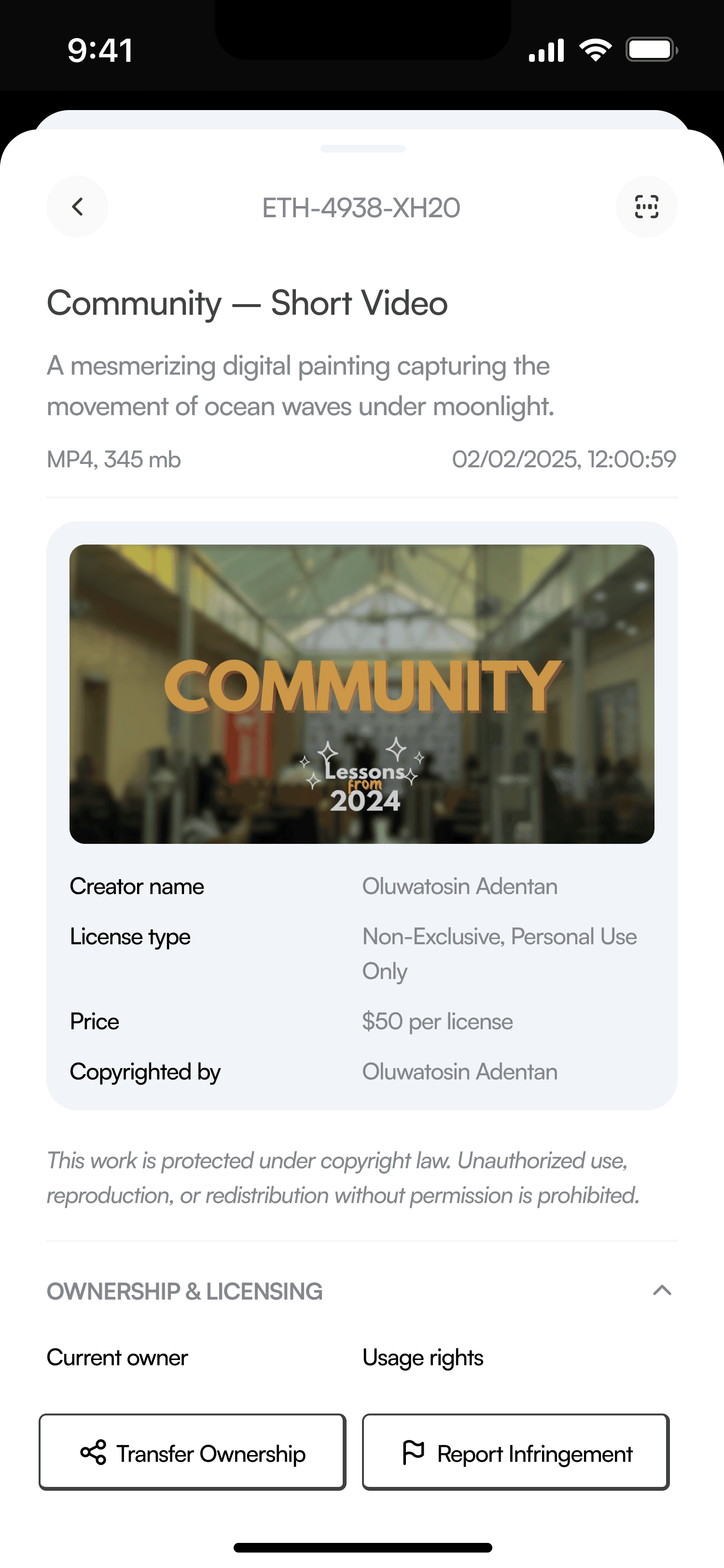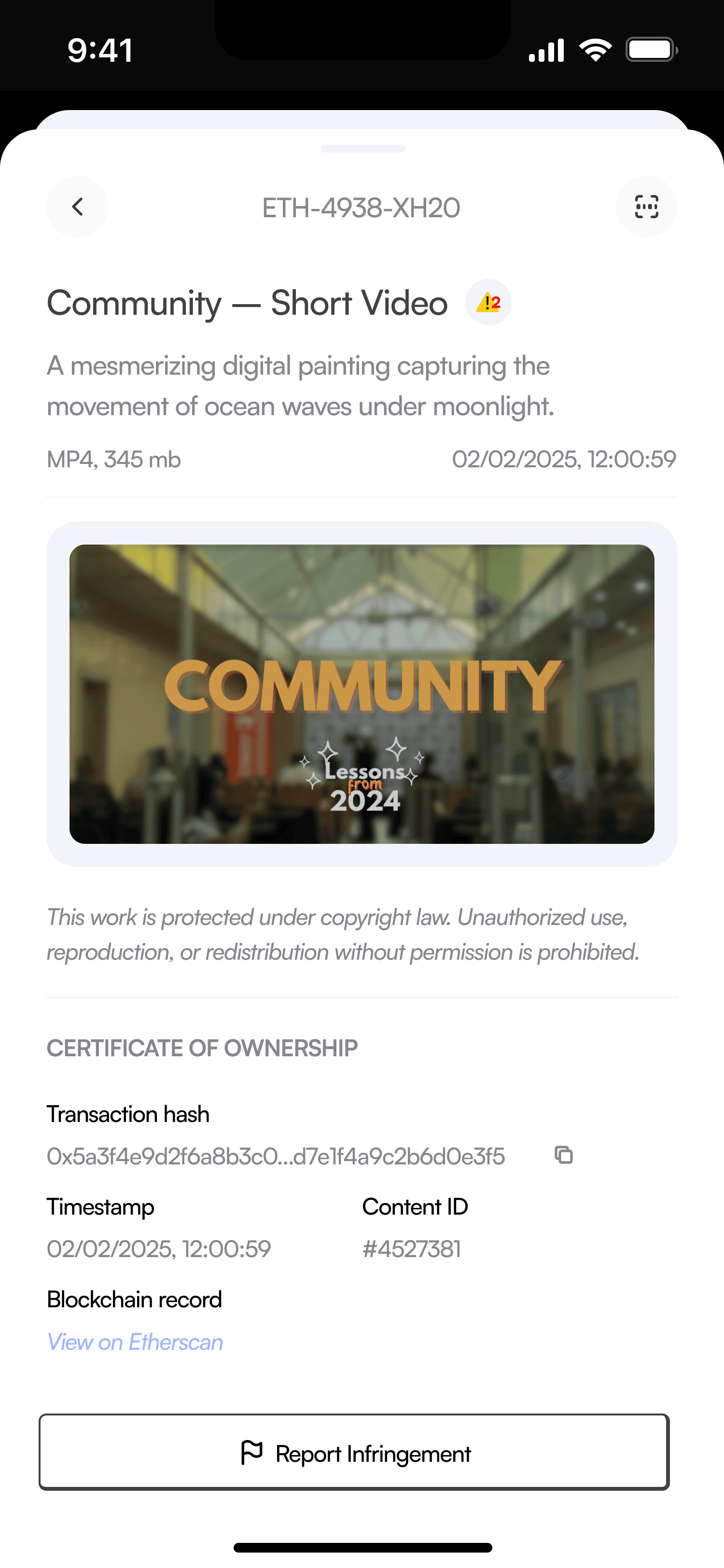 This project aims to build a copyright protection and management system for digital content creators across platforms. The system enables creators to register and prove ownership of their work, detect unauthorized use, manage licensing, resolve disputes, and monetize content seamlessly. It combines blockchain-based proof of ownership, AI-powered content detection, and automated licensing tools to protect creative assets while ensuring transparency, fair compensation, and legal compliance. Ultimately, it empowers creators to control how their content is used, tracked, and monetized online.